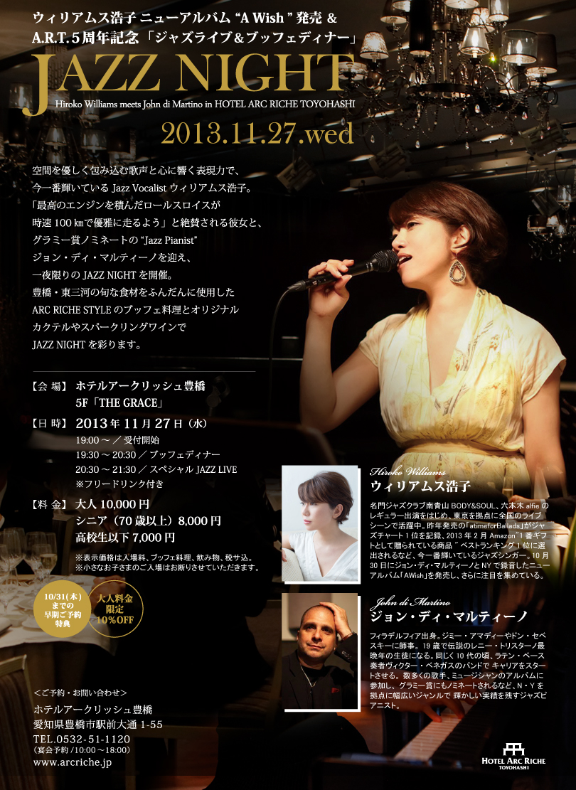 人の縁とは不思議なもので、その後、このジャズシンガーとの距離を縮め、豊橋での初コンサートを開くことを会社の上司へ提案、そして今回実現の運びとなったそうです。