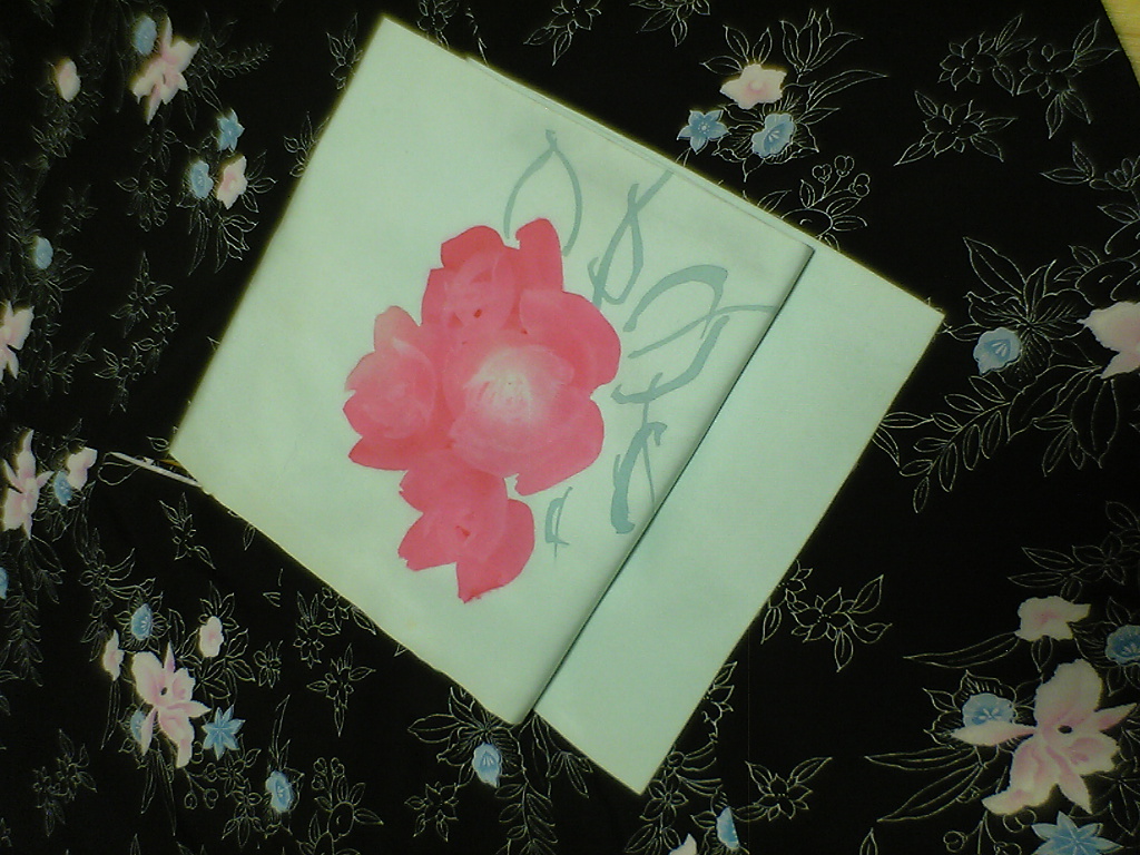 着物はシルック(化繊)で、帯は正絹の塩瀬の名古屋帯