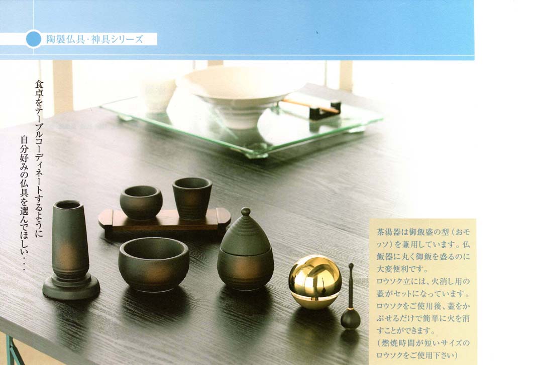 そんなこんなするうちに、ネットで岐阜の陶器メーカーのモダンな仏具を見つけ、それにあわせて小さな仏壇を買いました