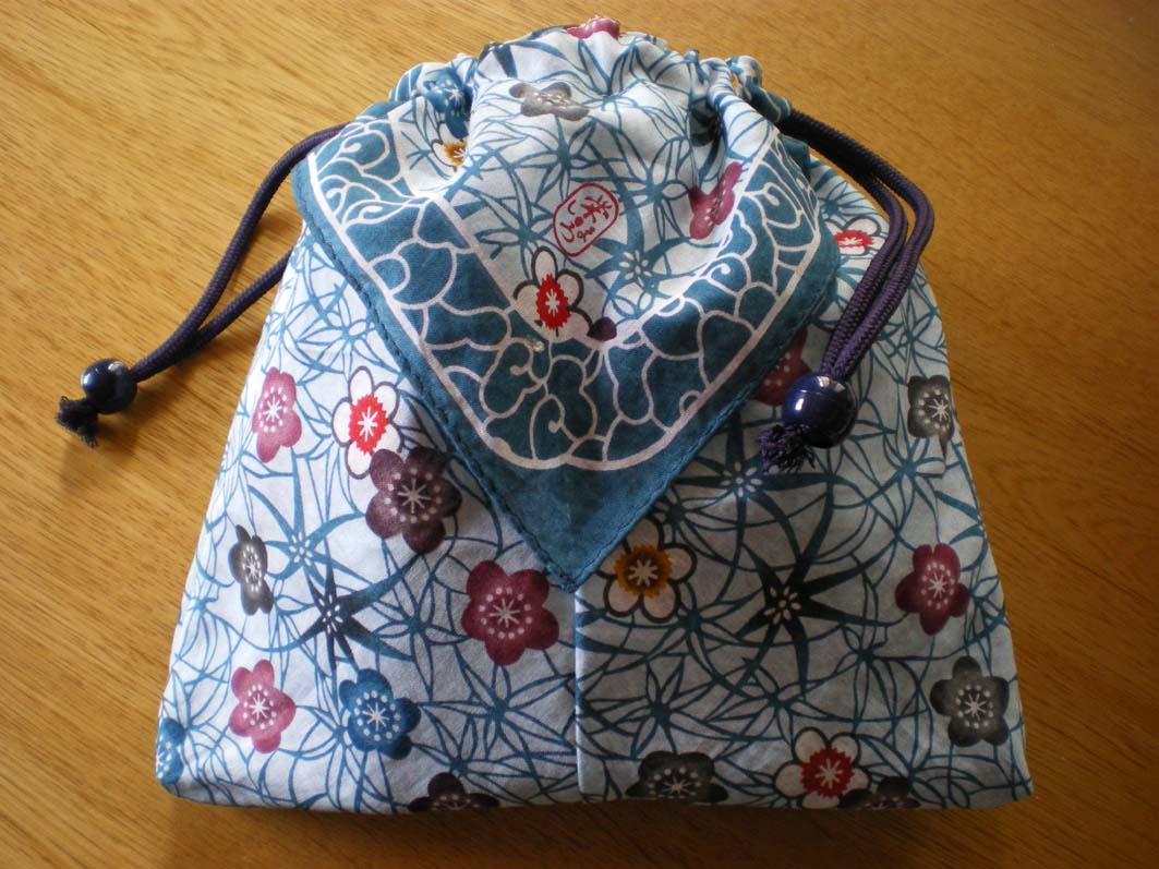 これはとても薄いハンカチなので、華奢な感じになりましたが、ちょっと地厚な、小風呂敷のようなもので作れば、しっかりとした巾着袋になりますね!