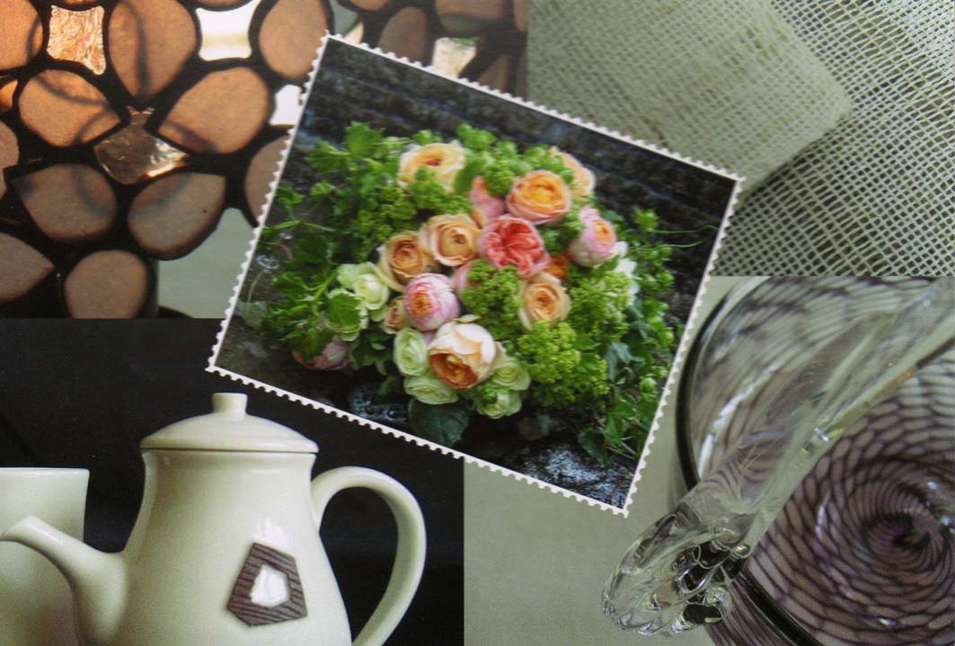 クミンさんのアレンジフラワー他、染、白磁、吹きガラス、ステンドグラス、木工 と興味をそそられる素材のお品ばかり