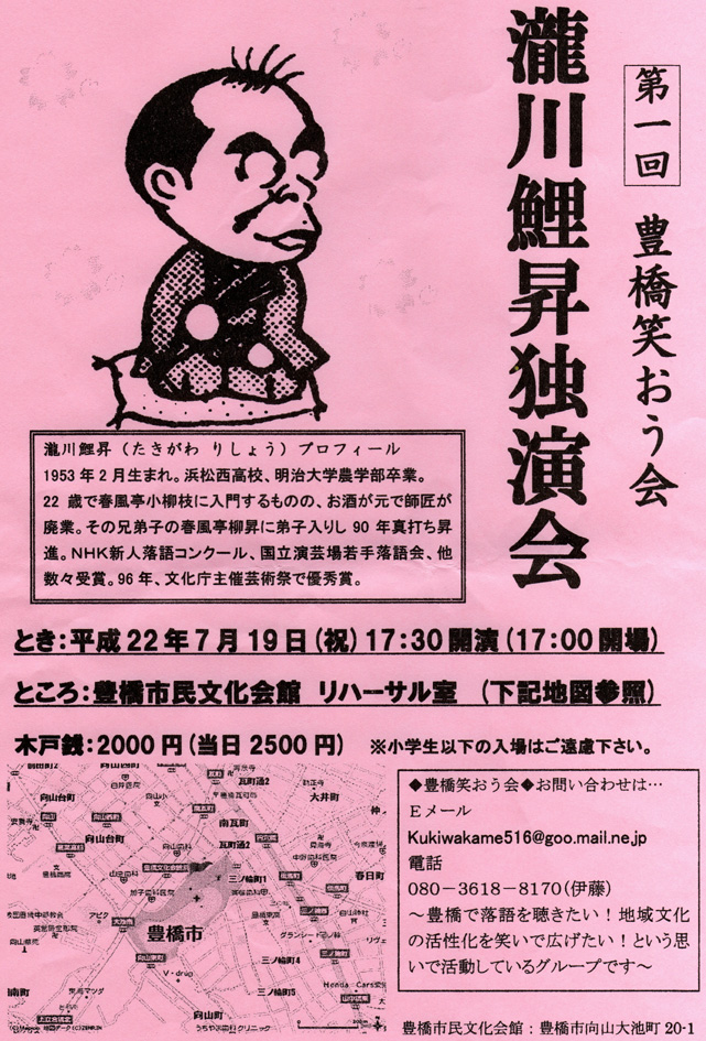 で、今回は豊橋ではじめて開かれる「瀧川鯉昇独演会」の出囃子の演奏も任されて・・・