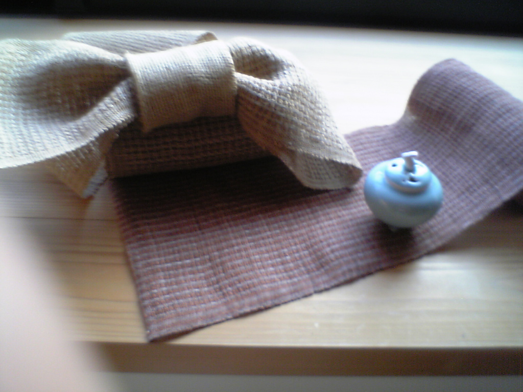 今年も浴衣は人気のようですね。見た目の涼しさもさることながら身にまとって風の通る感あり・・・帯はやはり麻の単でしょう。なかなか市販で探してもないので、麻の織物作家の友人に問うと、要は普通の8寸帯でも、半幅でも手間はほとんど変わらず、かといってそんなにお高いお値段もつけられず・・・お店で見かけないのも納得です