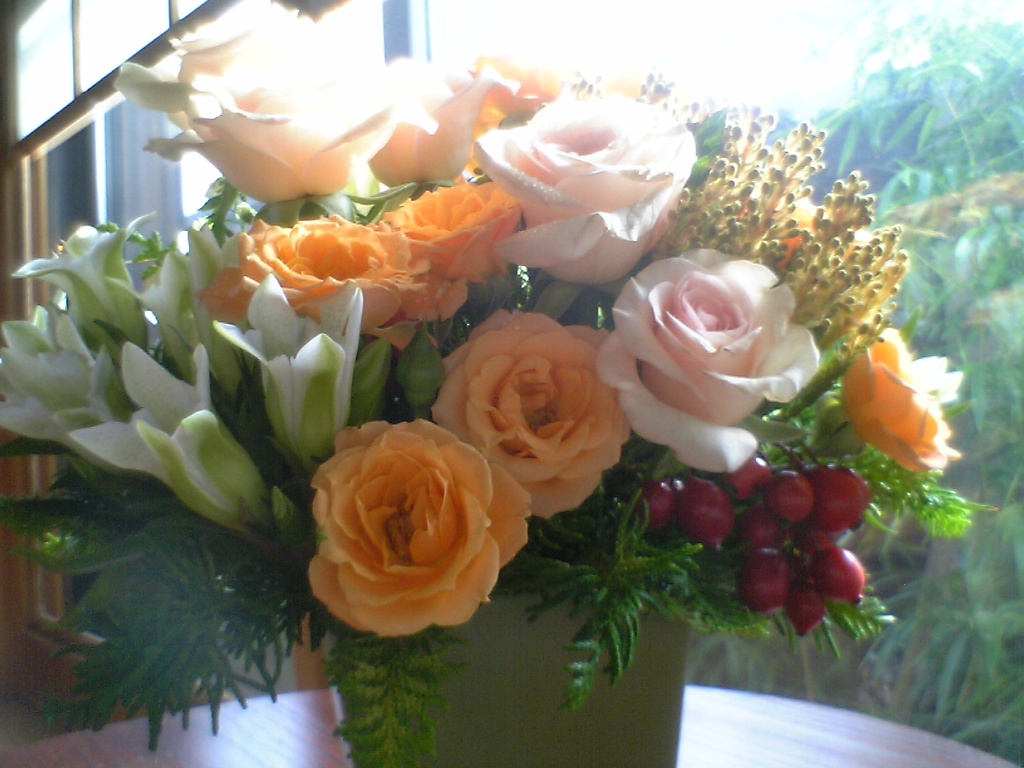日舞にはまったく関心のない息子が珍しく舞台を見に来てくれ、花のプレゼントを・・・