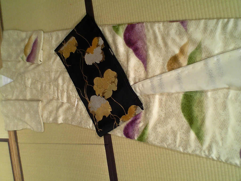 引き抜きの柄付けになっている丸帯で、少し汚れもあり、どうしようか悩んでいたら、お店の方がいい柄だから、帯として本当に締めてくれるならまけてあげるよ、とずいぶん安くしてくれたもの・・・