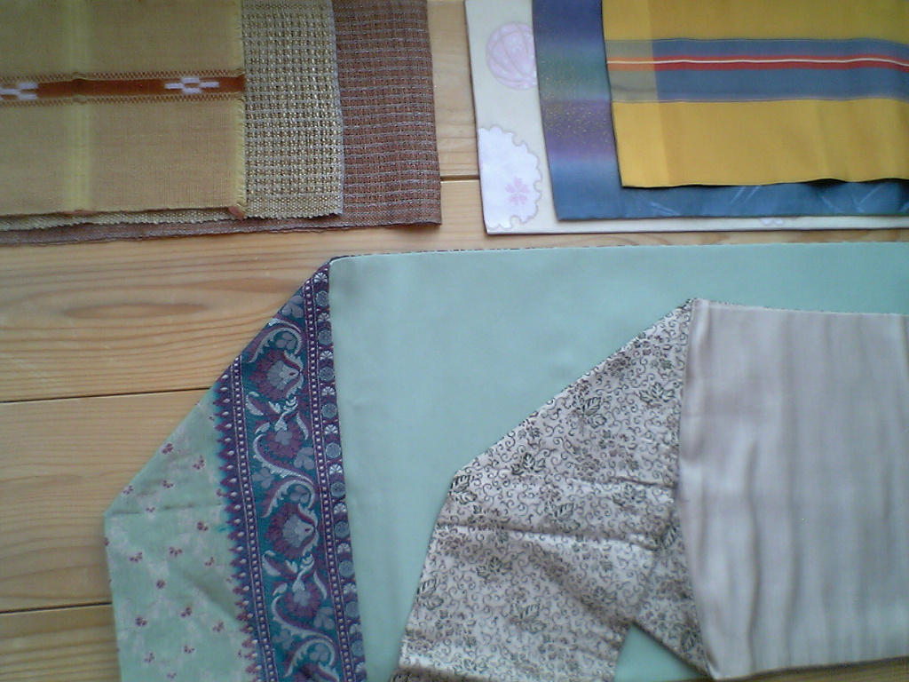 着付け教室で背の高い方にこの現代の名古屋帯を締めると、どうもバランスが悪いと私には思われますので、なるべく京袋とか、開き仕立てと呼ばれる、胴巻き部分が畳んでないものを勧めています