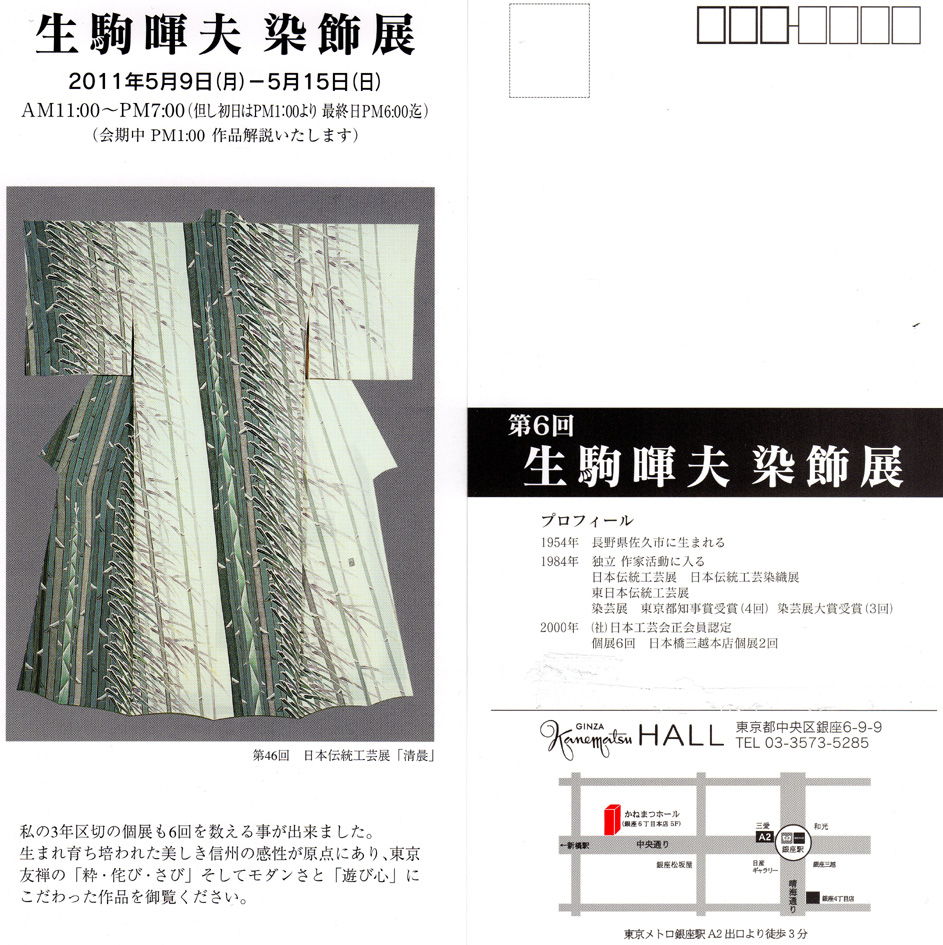 5月、東京友禅作家、生駒暉夫氏の個展が開かれます
