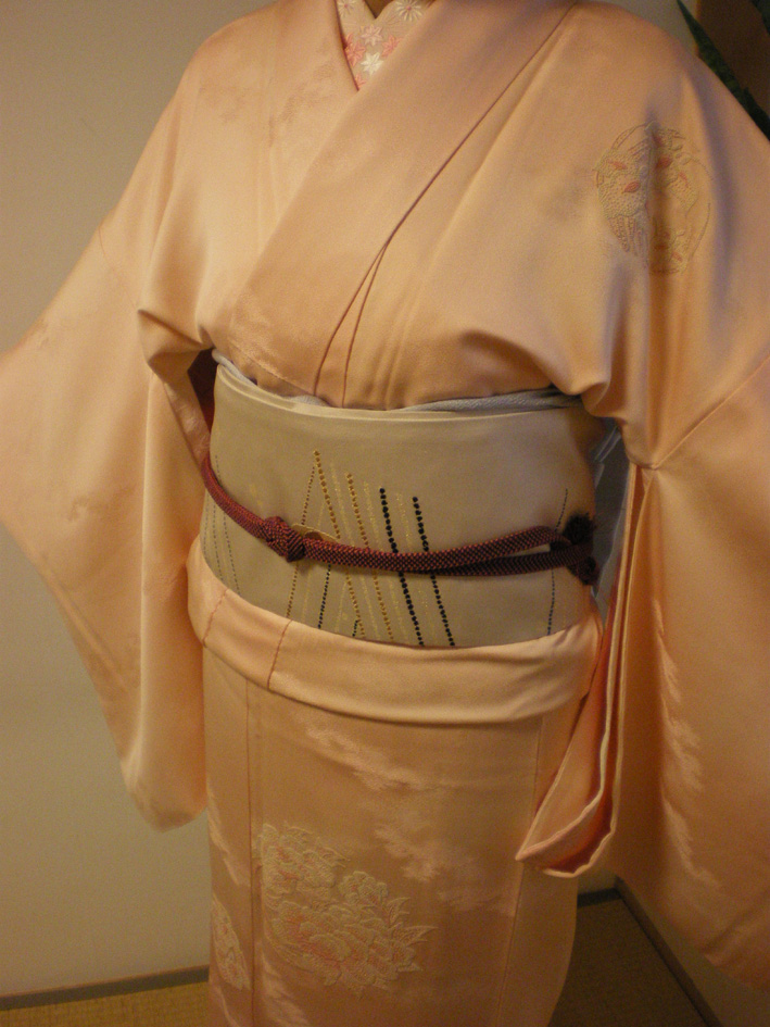 この帯、桜染めの淡いグレーの紬のお着物に合わせて購入したものですが・・・