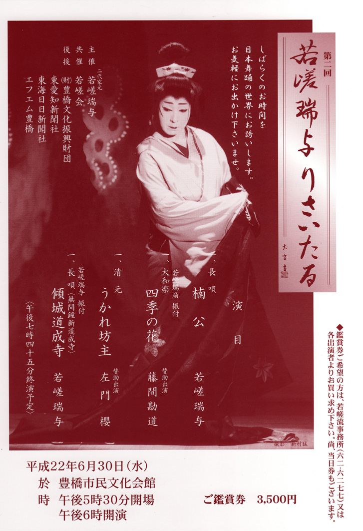 この6月30日、舞踊家の二代目 「若嵯瑞与りさいたる」 が開かれます