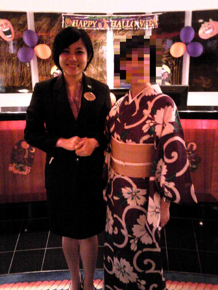 さて、この夜も、昨日のカナダからのご夫妻と食事をご一緒する約束をしていたので昨日とは違う着物でレストランへ
