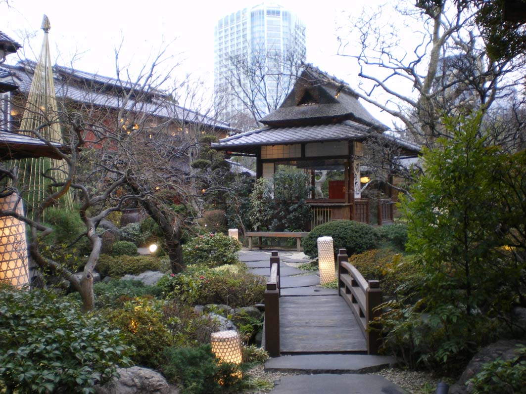 写真の中庭の小屋で焼かれた熱々の油揚げもお部屋に届くまでには、かすかな暖かさ