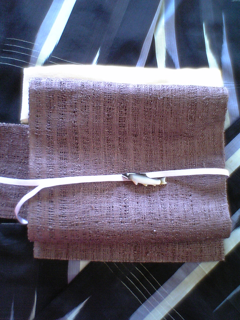 アンティークの明石縮みとざっくり織られた麻の帯
