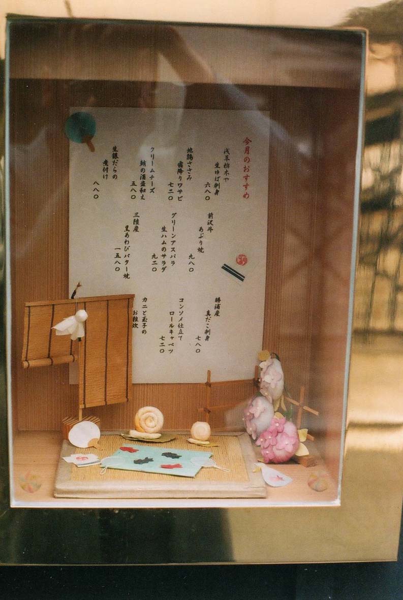 飲食店の入り口にはよく、メニューリストが置かれてたりしますが、こんな風だと、目にも涼しげな感じで、お料理の中身をつい想像したくなったのを覚えています