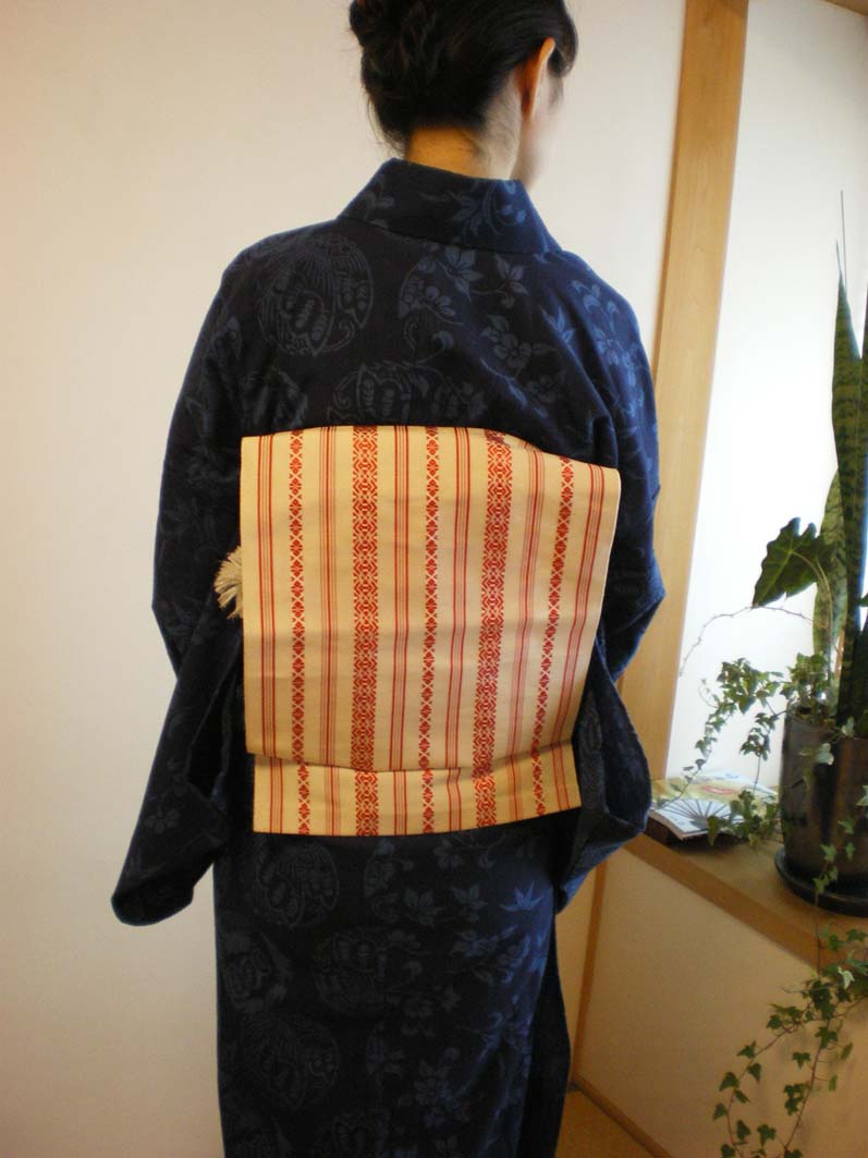 帯はもちろん正絹の博多・・・くっと締まる感じが気に入った様子