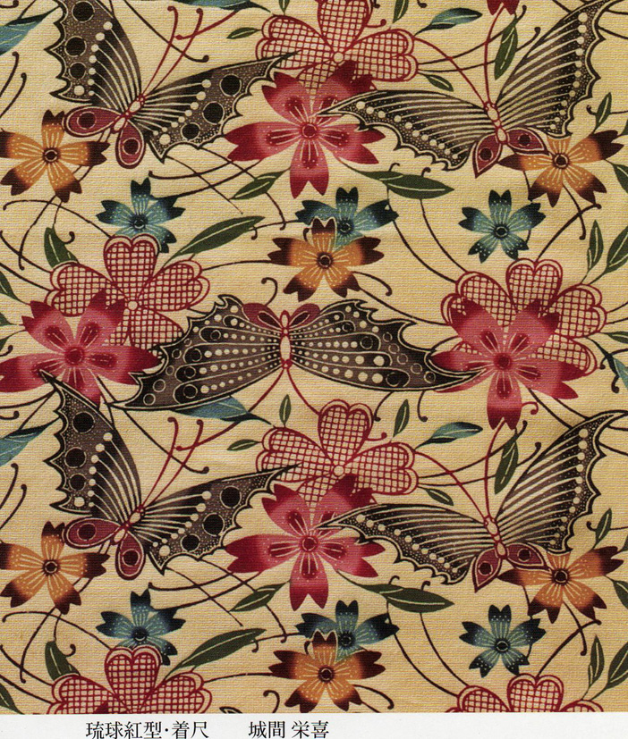 現在、琉球紅型を代表する作家のお一人、城間栄順さんのお父様・・・人間国宝でありました 栄喜さんの作品の着尺