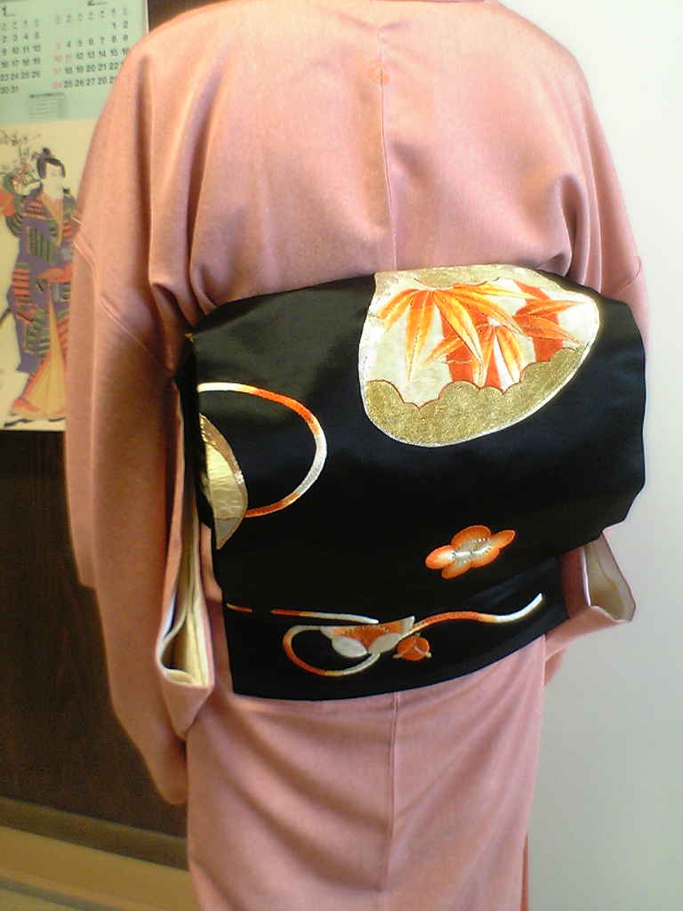 お母様から譲られたという、この黒い丸帯・・・両面に見事な刺繍がほどこされています